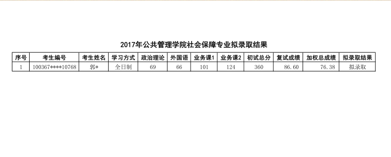 2017年对外经济贸易大学社会保障研究生拟录取名单