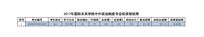 2017年对外经济贸易大学中外政治制度研究生拟录取名单