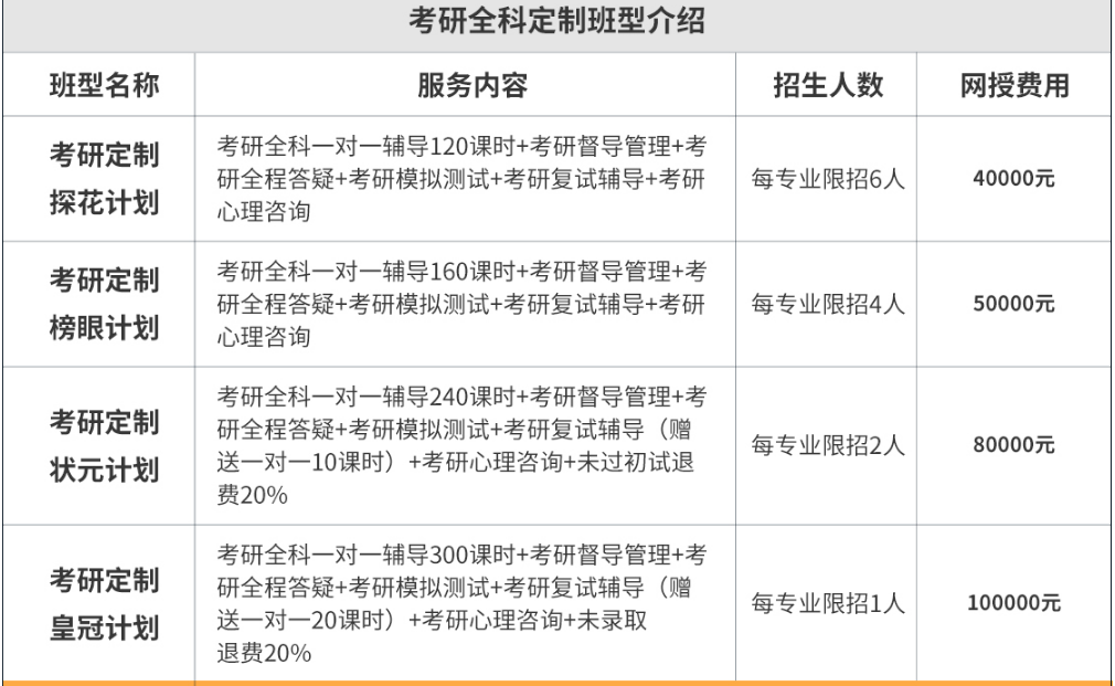 6、专业课一对一师资若无对应直系学长学姐,将匹配同等水平专业师资授课,费用减免10%。