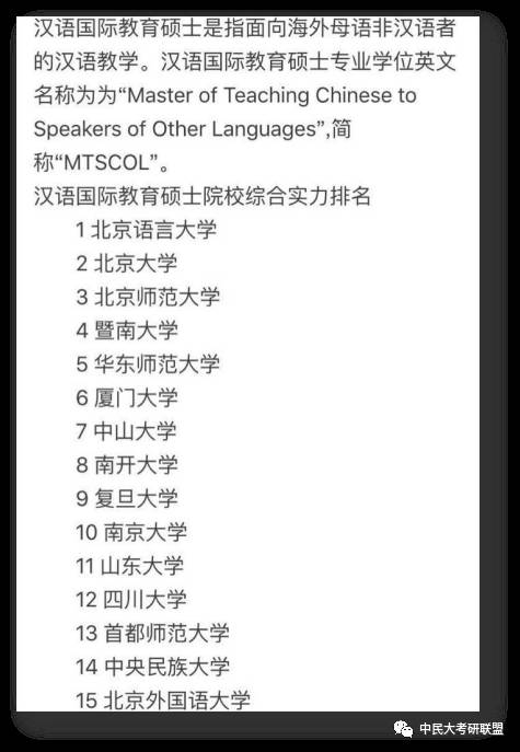 当然还得参考一下学校的学费和奖学金制度以及住宿条件,比如北师大的汉语国际教育就不提供住宿,同济大学的汉语国际教育就不招收在校毕业生,中央民族大学的汉语国际教育限制专业大跨……我当时选民大,理由还是挺简单的:北京,211+985(据说这找工作的时候还是很有用的),1+2+X的培养方案,去美国!!!