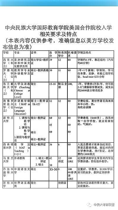 这是民大去美国的一些合作院校: