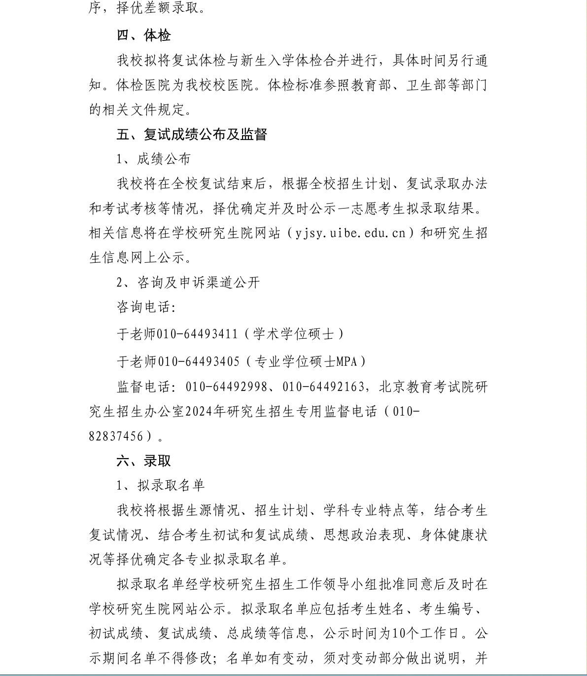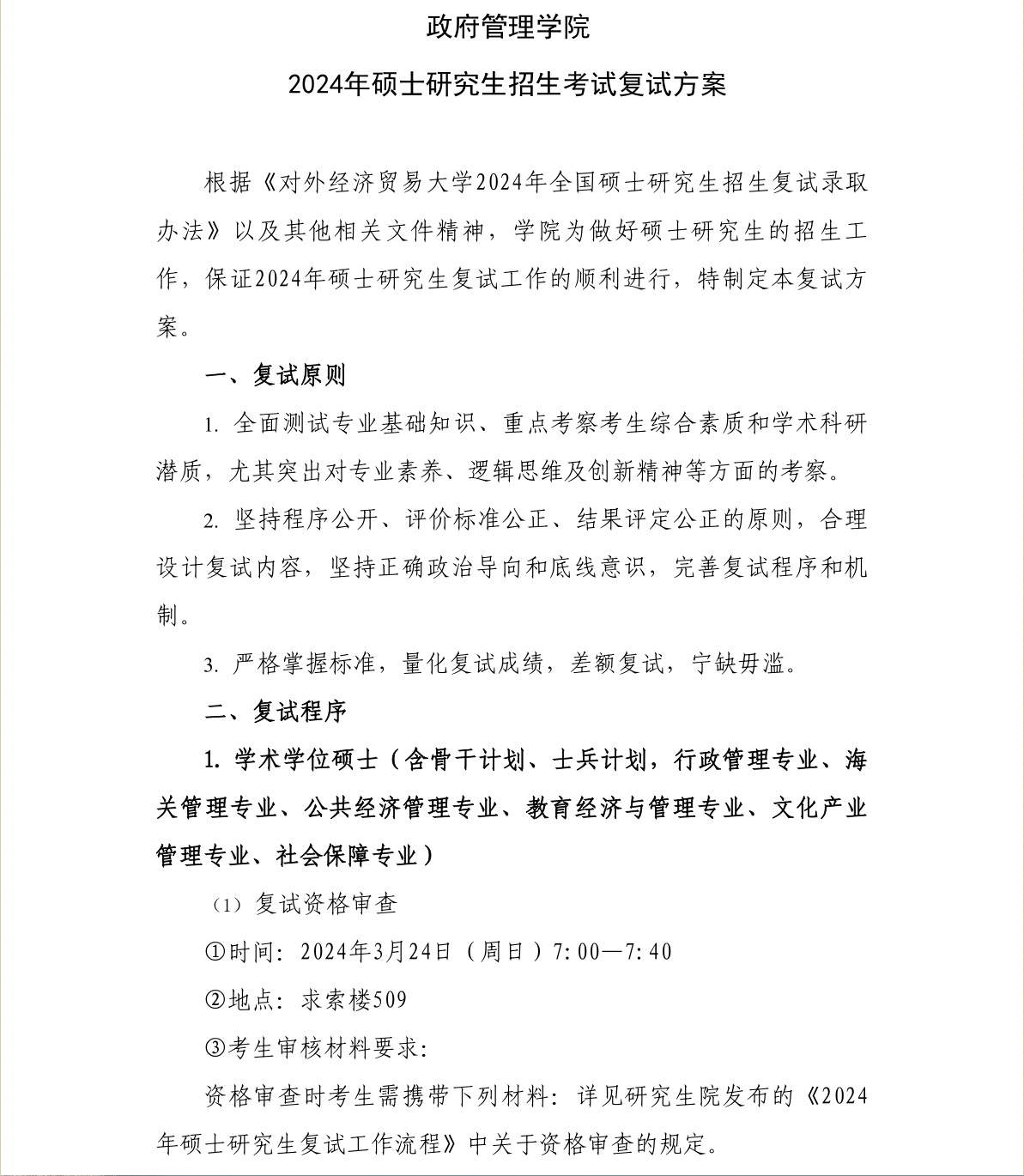 对外经济贸易大学政府管理学院2024年硕士研究生招生考试复试方案