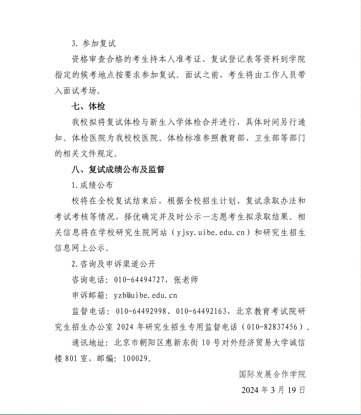 对外经济贸易大学国际发展合作学院2024年硕士研究生招生考试复试方案