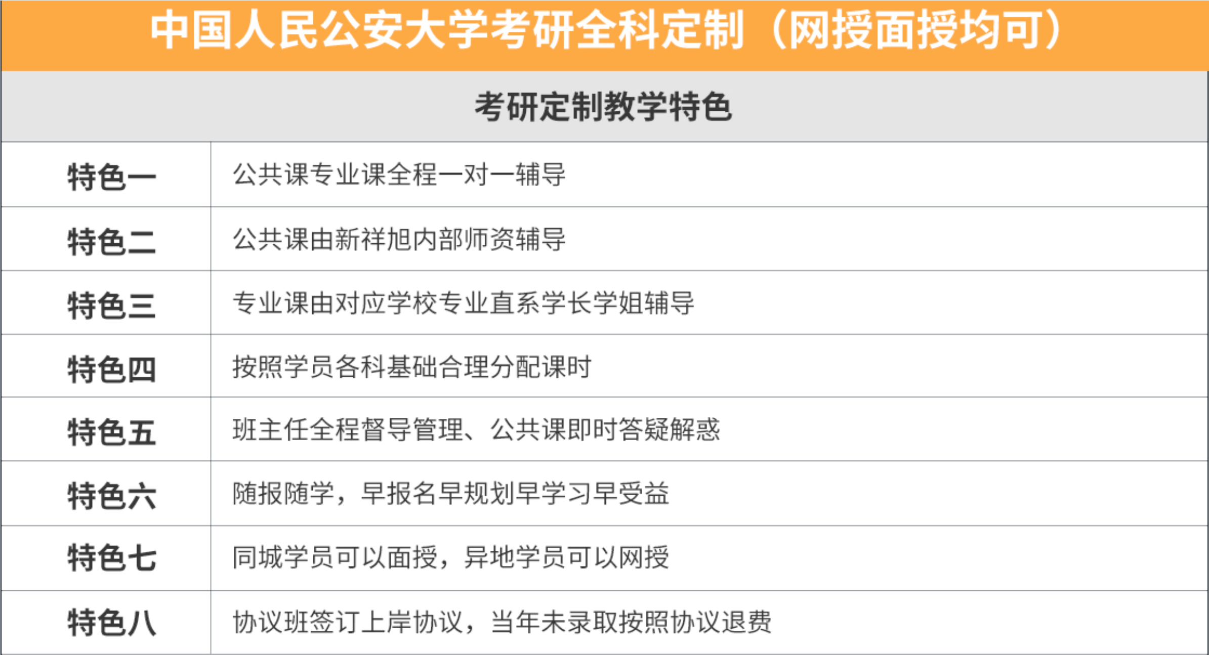 新祥旭考研专注中国人民公安大学考研全科定制辅导,以效果为导向,以上岸为目标,为广大考研学生提供个性化、定制化、多对一的考研全科全程辅导,考研公共课和考研专业课皆为一对一辅导,全国各地考研学生可以面授也可以网授,力争让考研学生顺利考取中国人民公安大学攻读硕士研究生。
