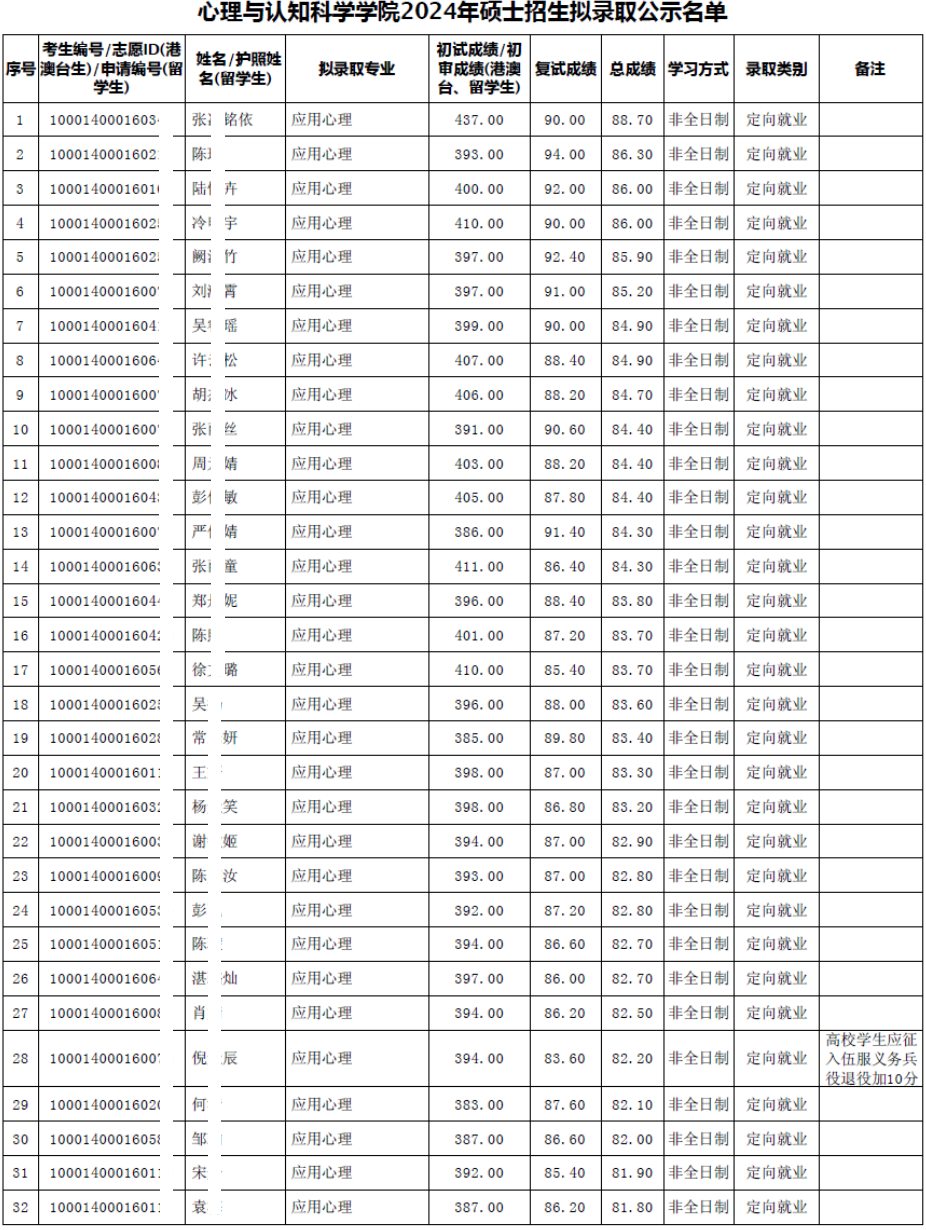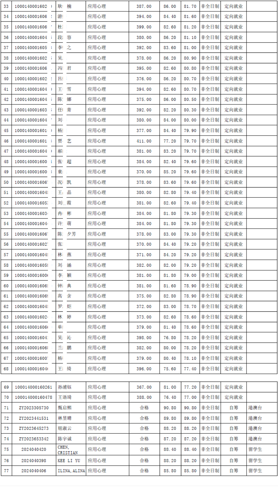 2025年心理学院计划招收非全日制应用心理(MAP)专业学位硕士研究生共计70人,其中本专业下设应用心理学和临床与健康心理学两个研究方向,招生计划数各35人。非全日制硕士研究生原则上我校仅招收在职定向就业人员,考生在报名时根据自身实际情况填报,院系在录取时予以确定。被我校录取的非全日制硕士研究生需在报到前签署双方“定向就业研究生协议书”。