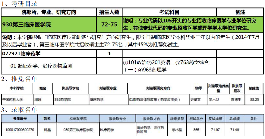 北京大学医学部077921 临床药学考研目录