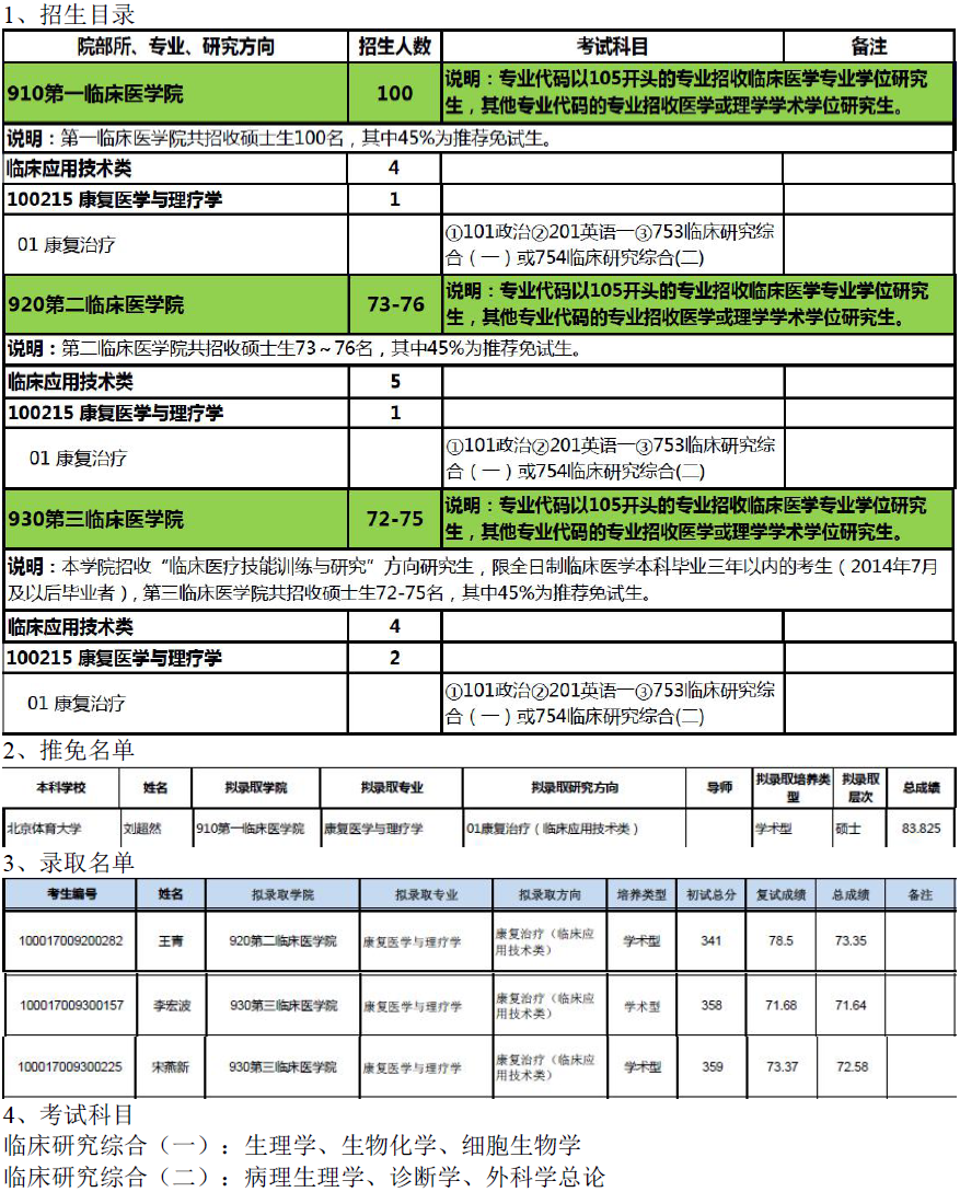 北京大学医学部100215康复医学与理疗学考研目录
