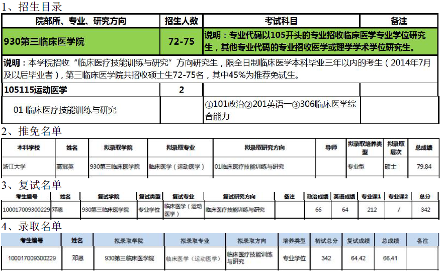 北京大学医学部105115运动医学考研目录