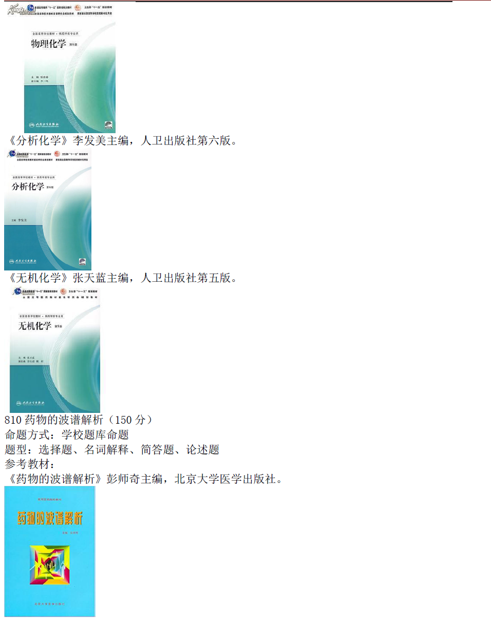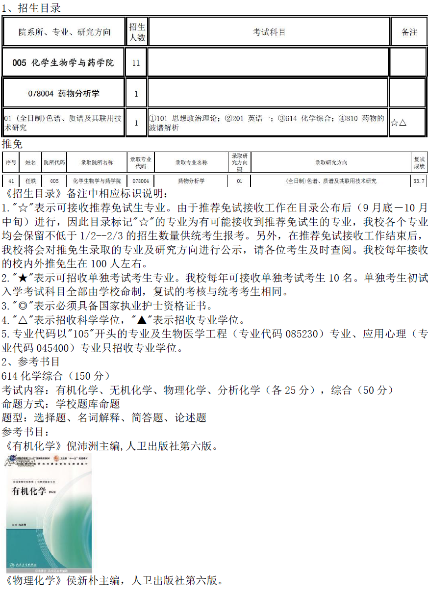 2017年首都医科大学078004药物分析学招生目录、推免名单、参考书目