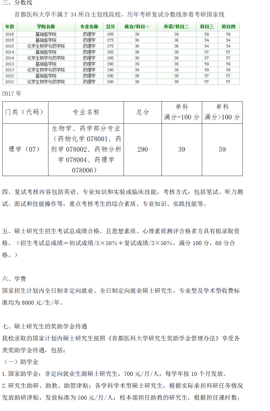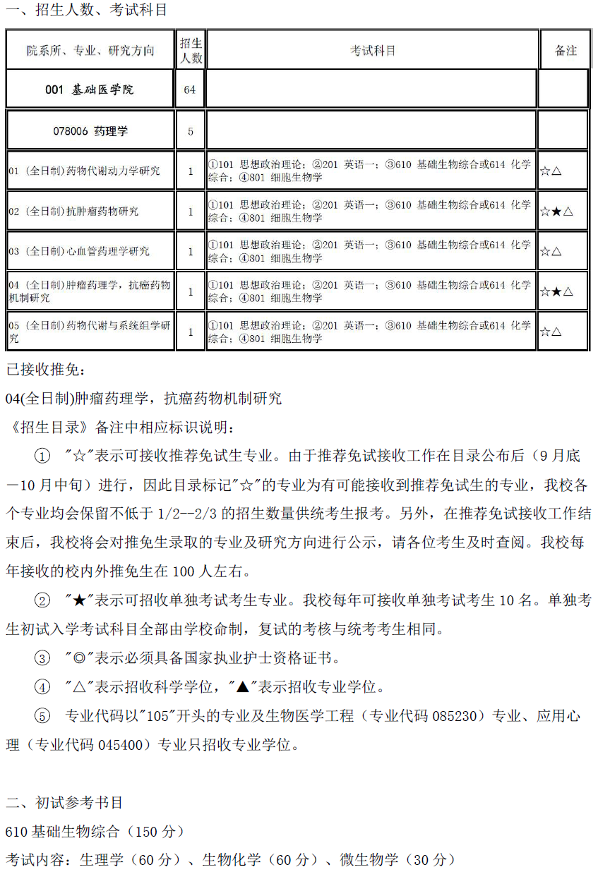 2017年首都医科大学078006药理学考研目录、推免名单、参考书目
