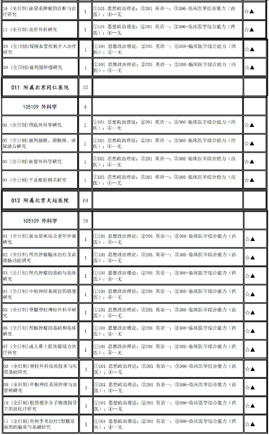 2017年首都医科大学105109外科学招生目录、推免名单