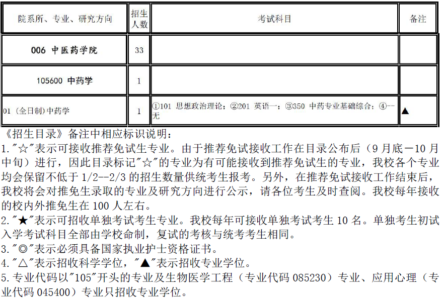 2017年首都医科大学105600中药学招生目录