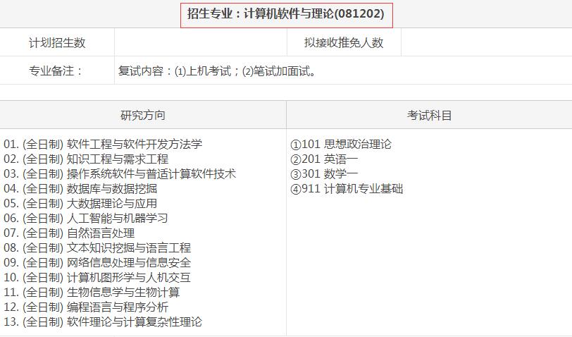 2018北京大学计算机专业考研招生信息
