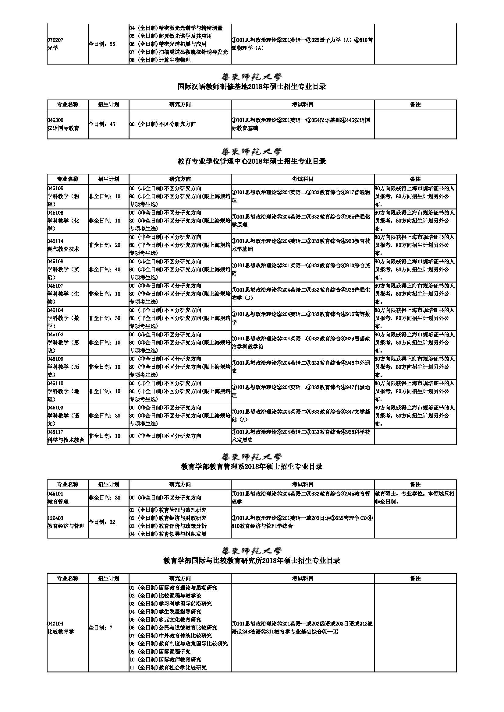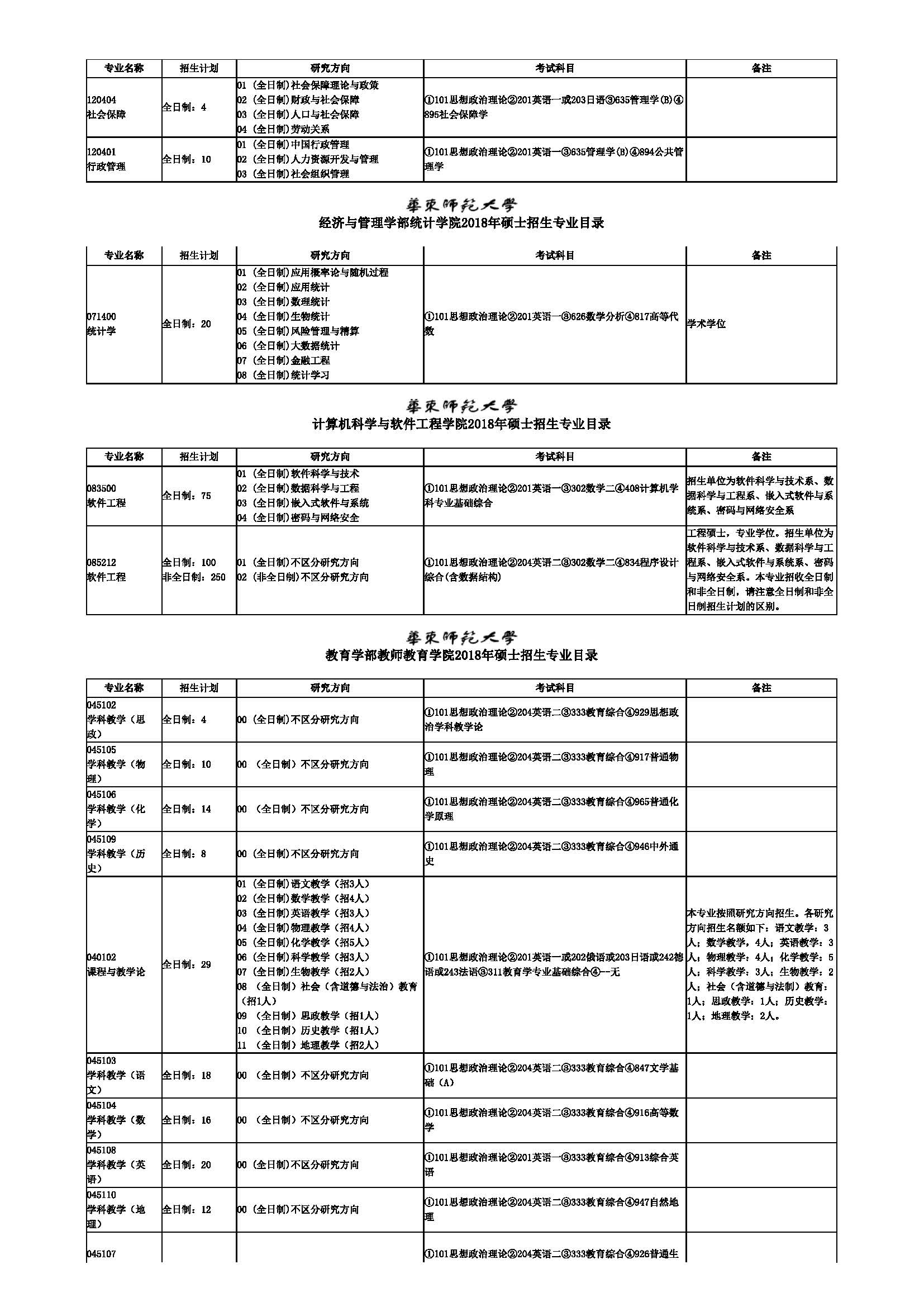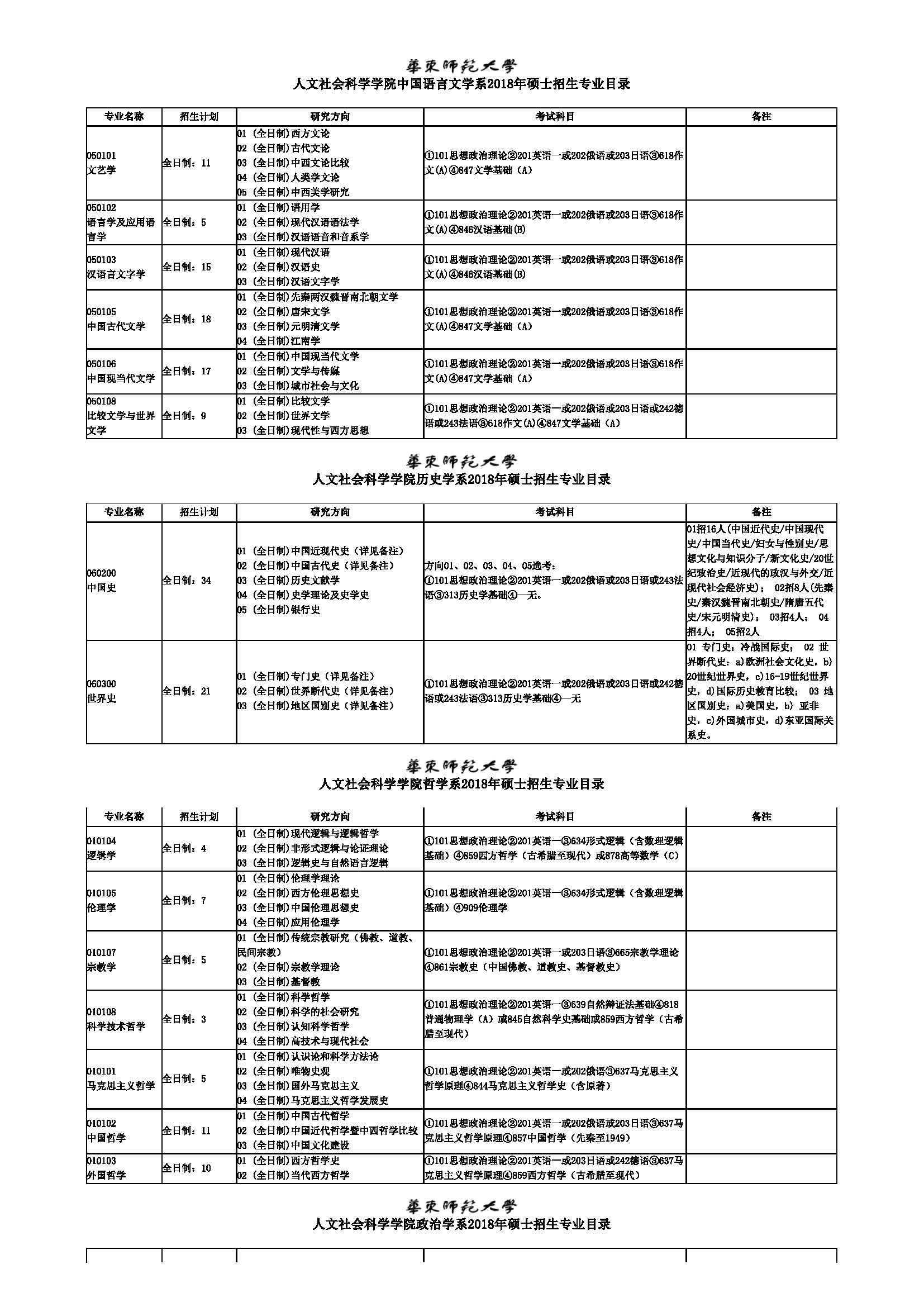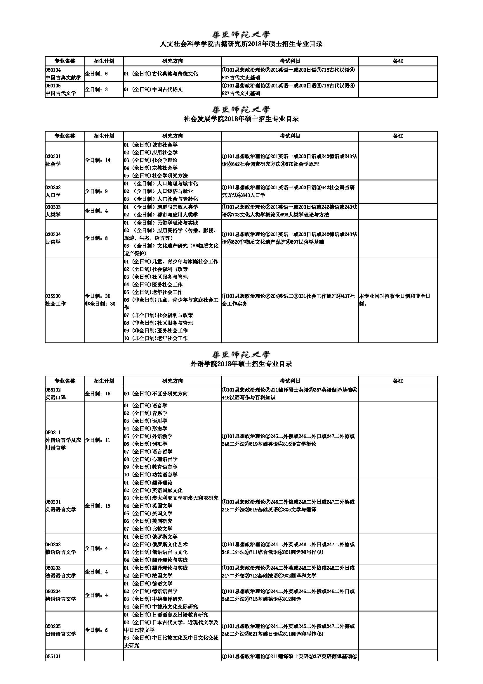 华东师范大学中国语言文学系2018年招生人数、招生专业