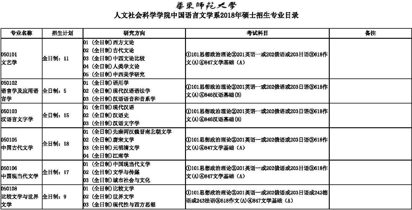 华东师范大学中国语言文学系2018年招生人数、招生专业