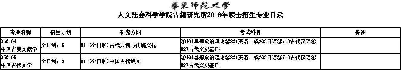 华东师范大学古籍研究所2018年硕士研究生招生人数、招生专业