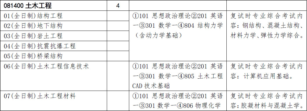 01-05方向:①101 思想政治理论②201 英语一③301 数学一④804 结构力学(含动力学基础)