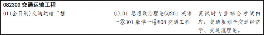 ①101 思想政治理论②201 英语一③301 数学一④808 交通工程