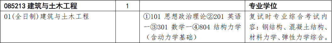 ①101 思想政治理论②201 英语一③301 数学一④804 结构力学(含动力学基础)