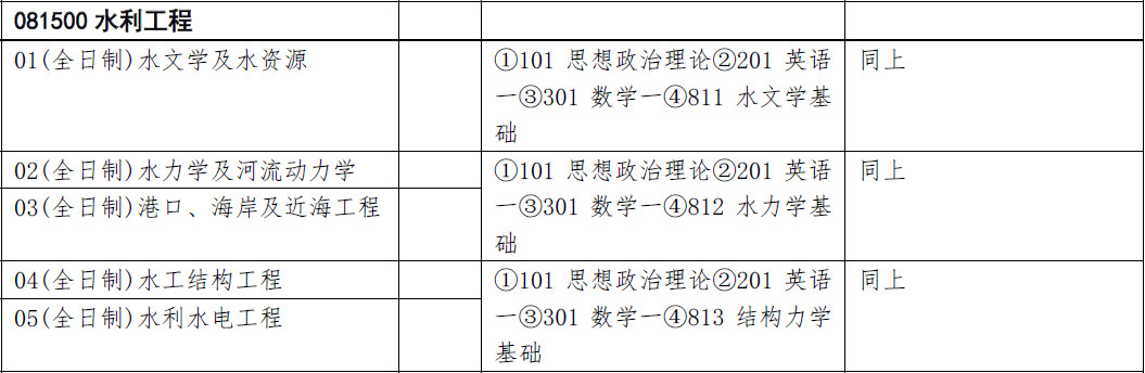 ①101 思想政治理论②201 英语一③301 数学一④812 水力学基础