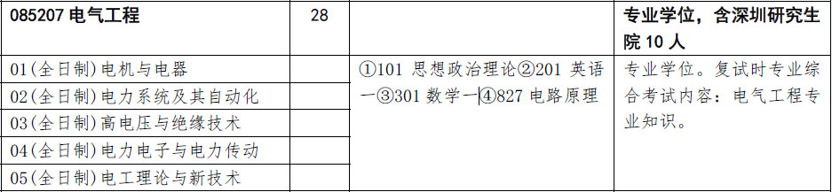 ①101 思想政治理论②201 英语一③301 数学一④827 电路原理