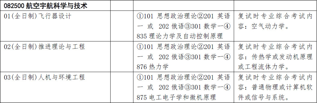 02方向:①101 思想政治理论②201 英语一 或 202 俄语③301 数学一④876 热力学