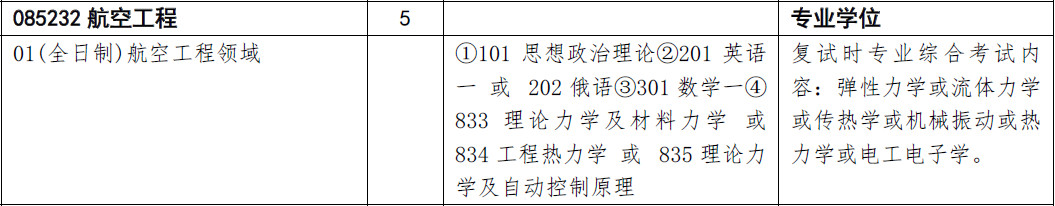 ①101 思想政治理论②201 英语一 或 202 俄语③301 数学一④833 理论力学及材料力学 或834 工程热力学 或 835 理论力学及自动控制原理