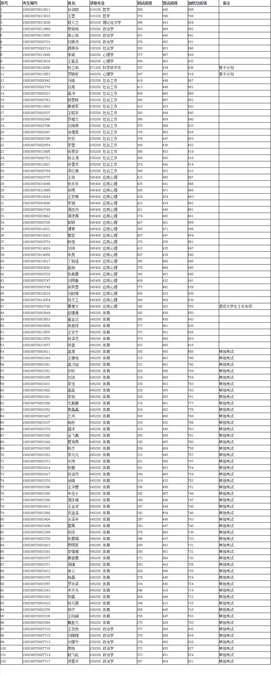 清华大学社会科学学院2018年硕士研究生拟录取名单