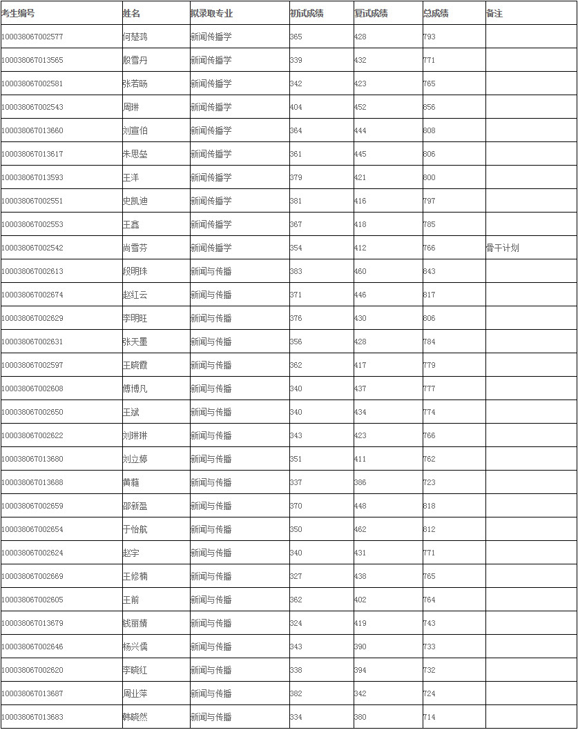清华大学新闻与传播学院2018年硕士研究生拟录取名单
