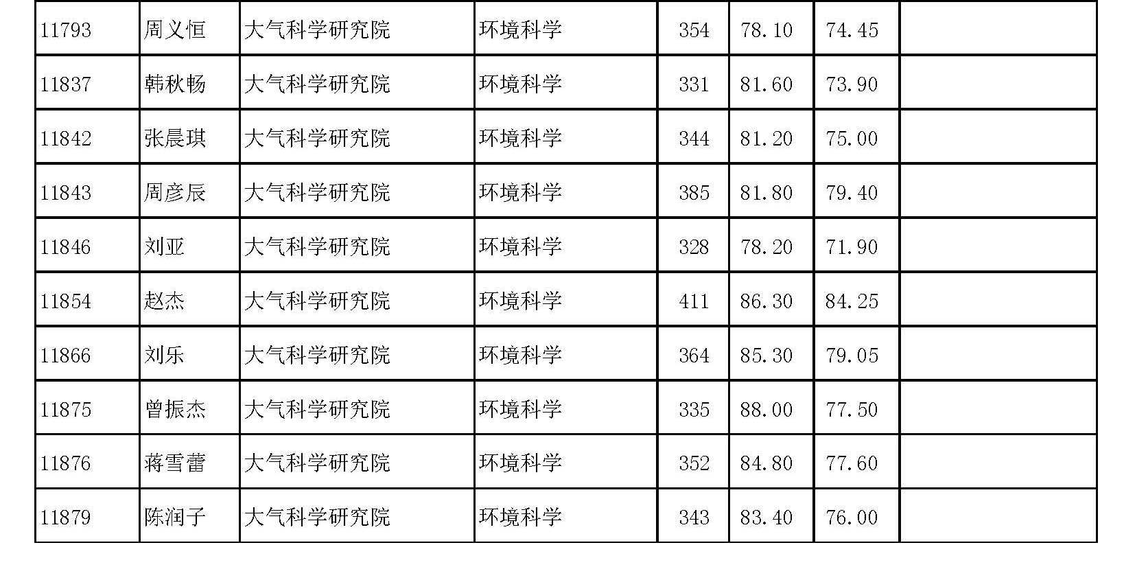 复旦大学大气科学研究院2018年硕士研究生拟录取名单