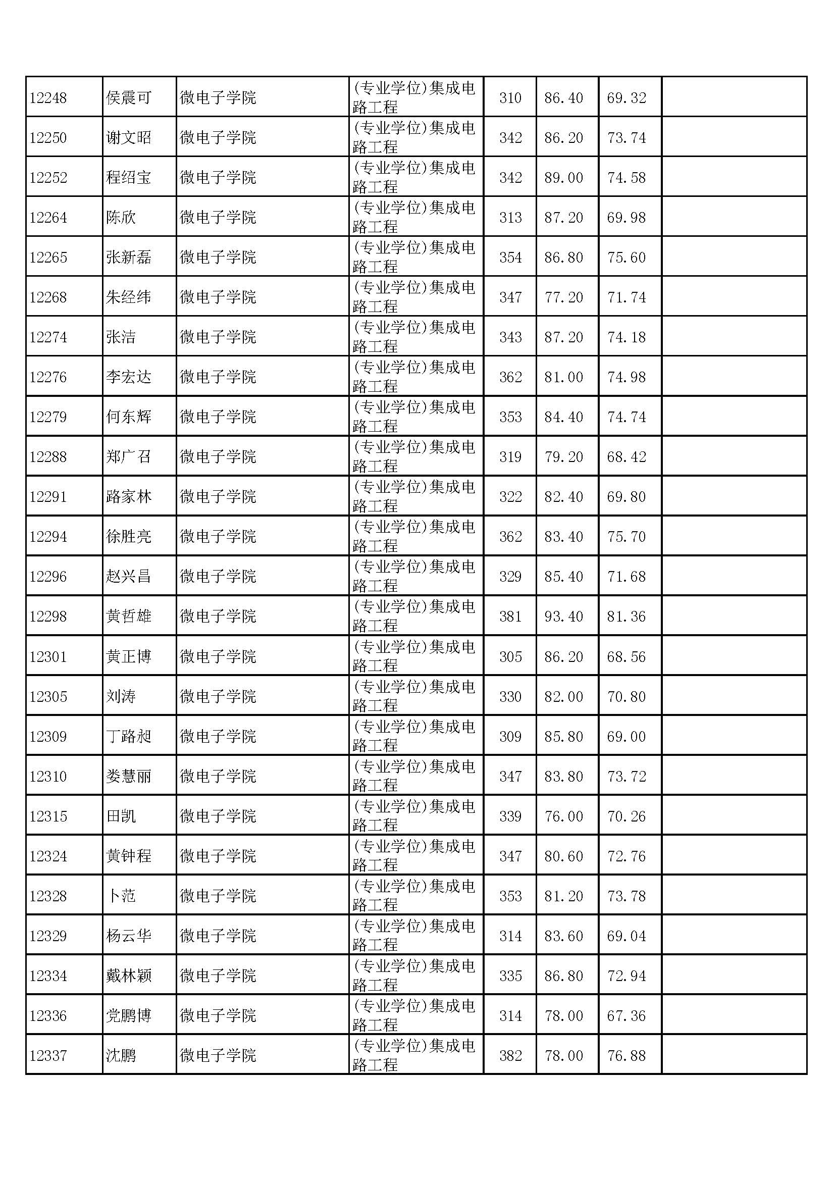 复旦大学微电子学院2018年硕士研究生拟录取名单