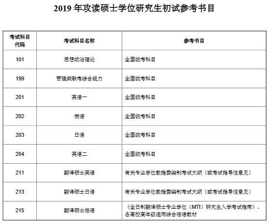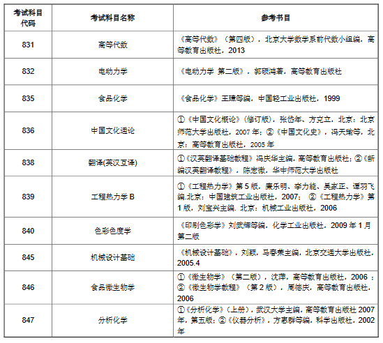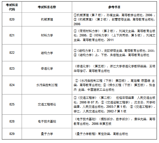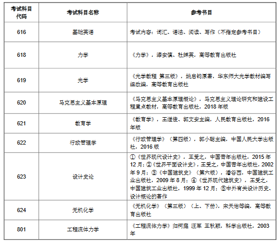 2019年上海理工大学考研招生初试参考书目