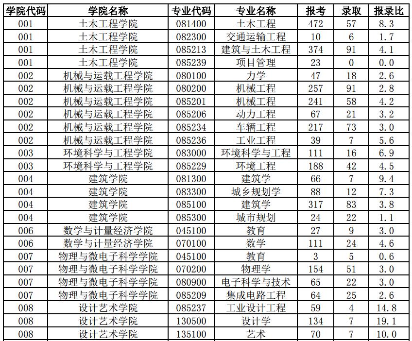 湖南大学2018硕士研究生各专业报录比!
