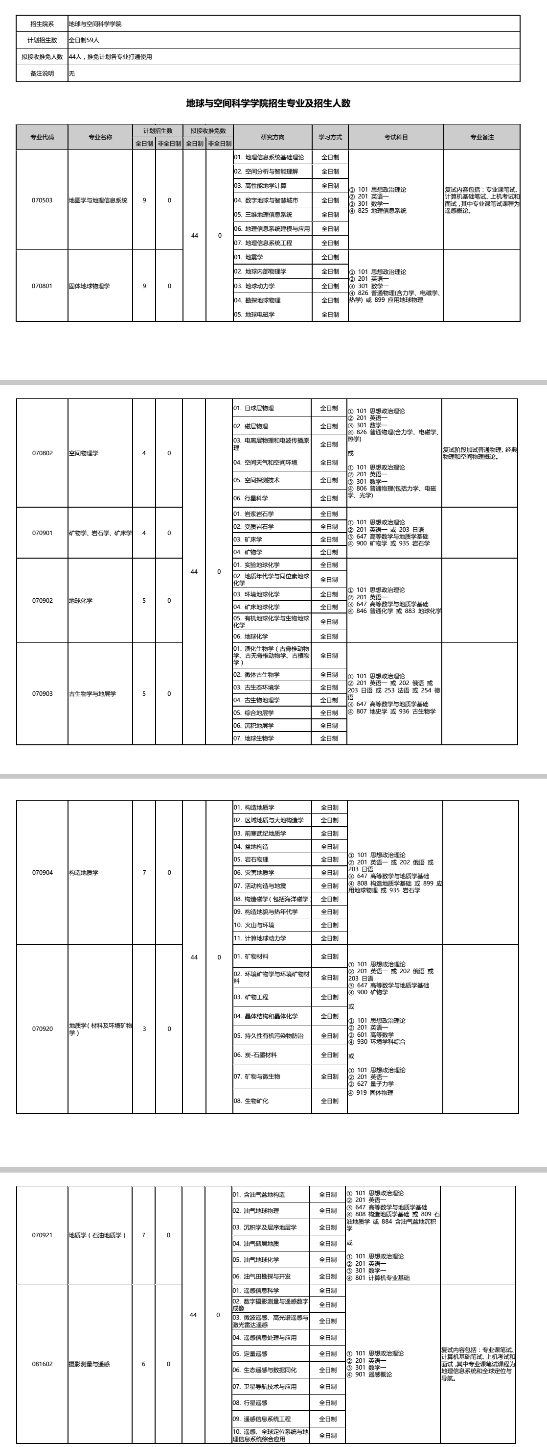 北京大学2019年地球与空间科学学院研究生考研专业目录
