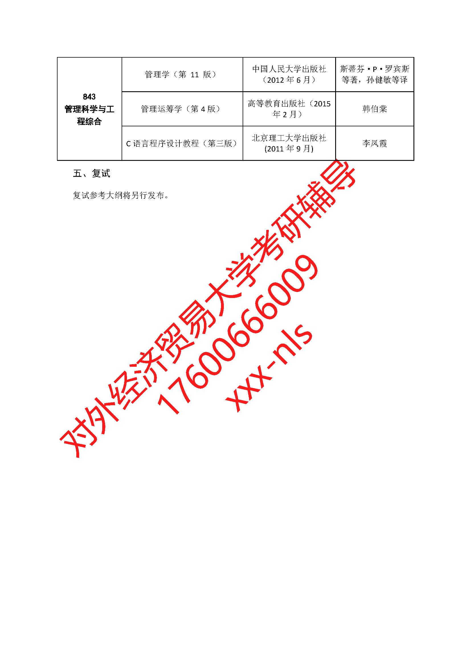 对外经济贸易大学信息学院2019年硕士研究生招生专业目录