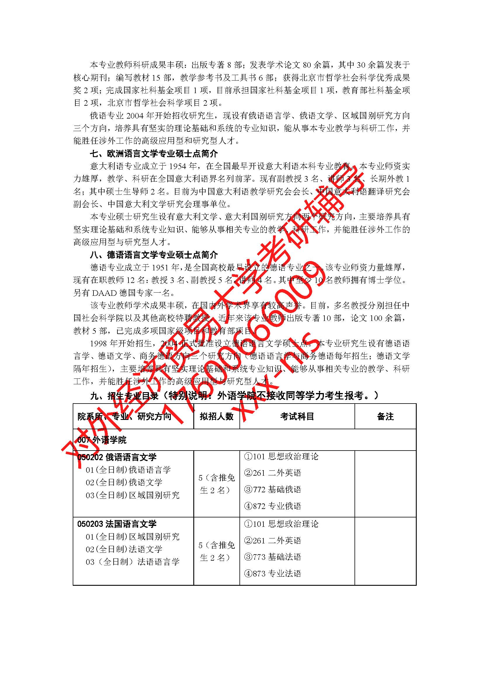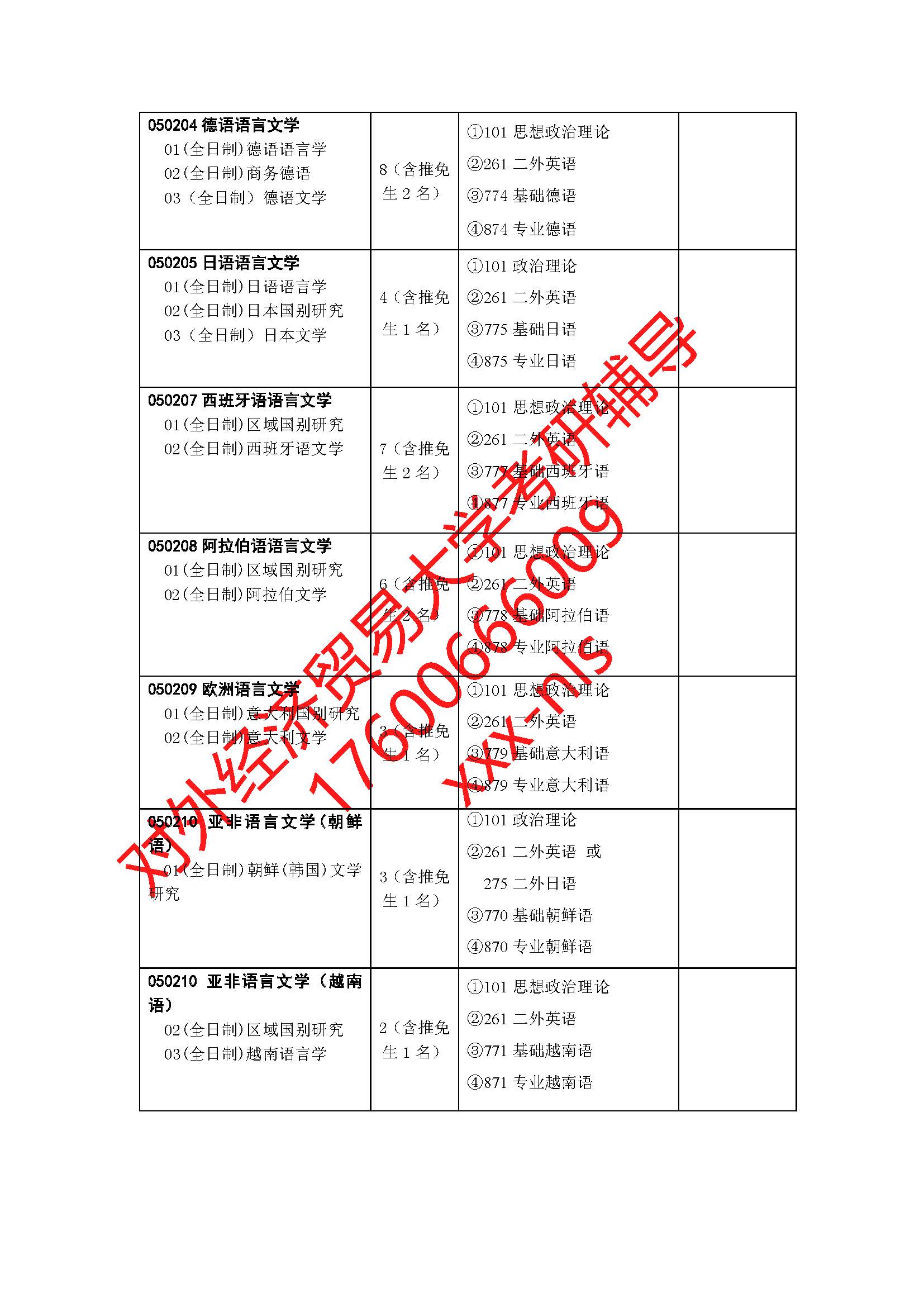 对外经济贸易大学外语学院2019年硕士研究生招生专业目录