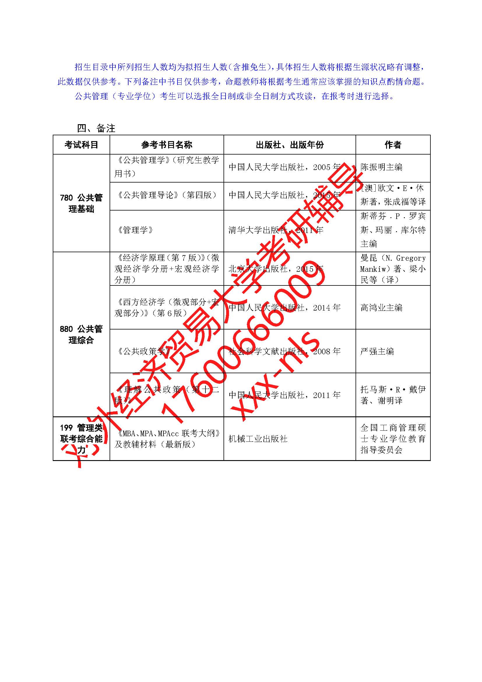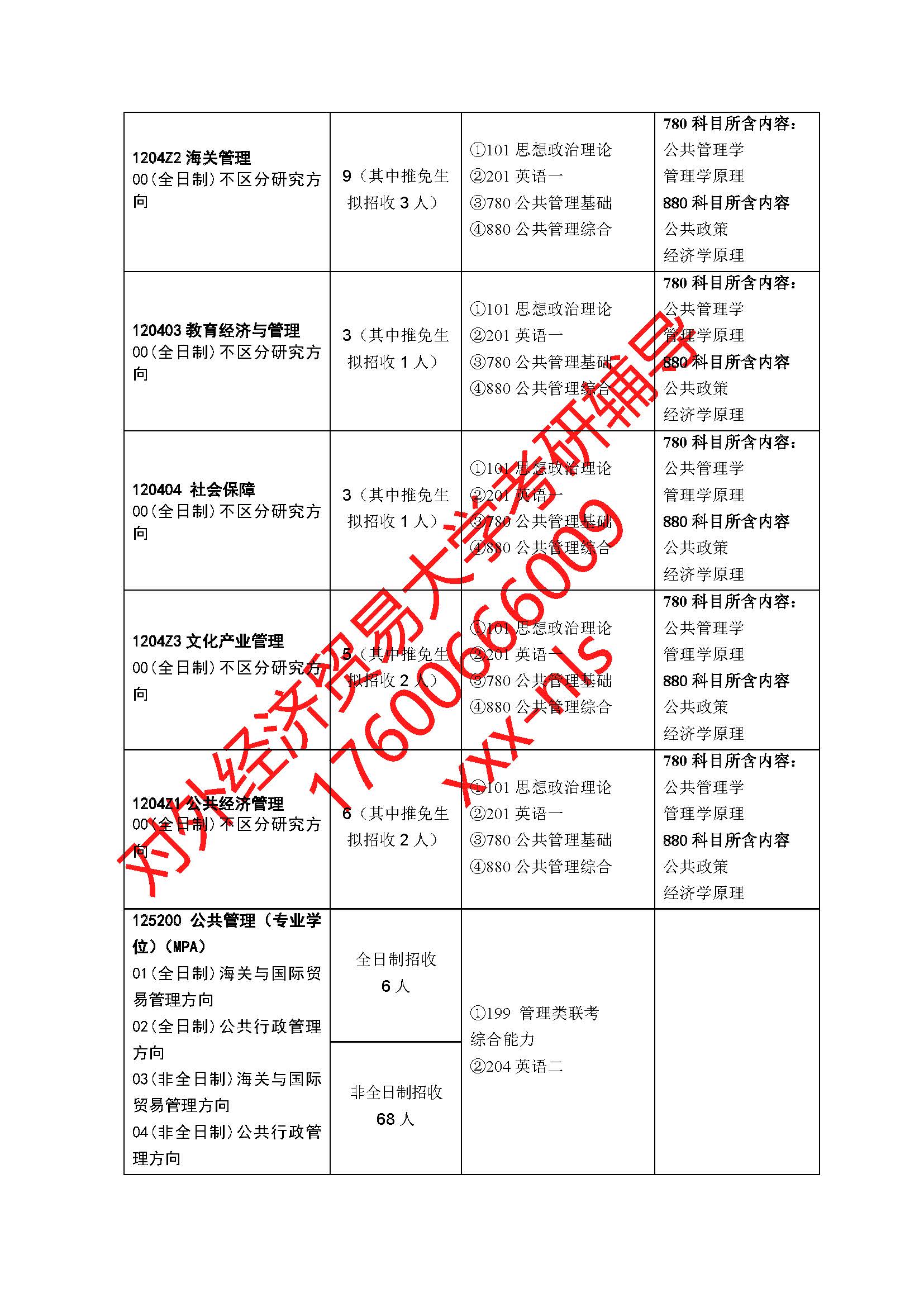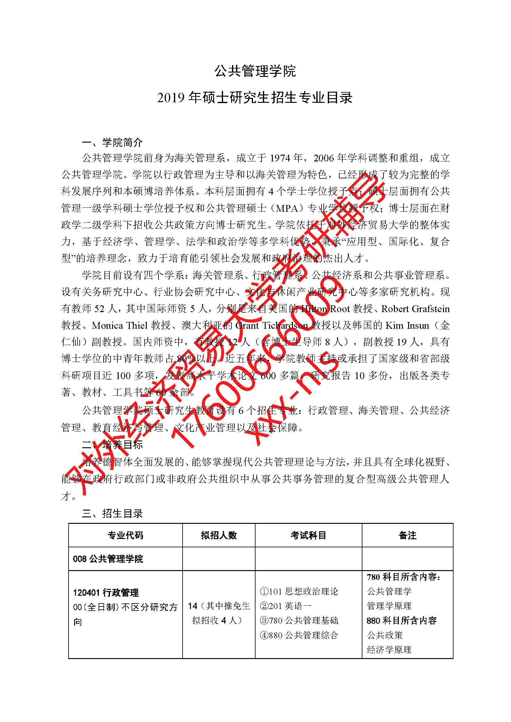 对外经济贸易大学公共管理学院2019年硕士研究生招生专业目录