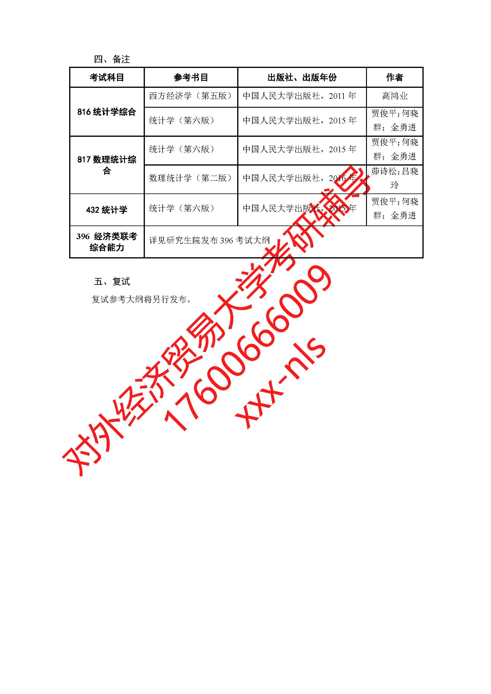 对外经济贸易大学统计学院2019年硕士研究生招生专业目录