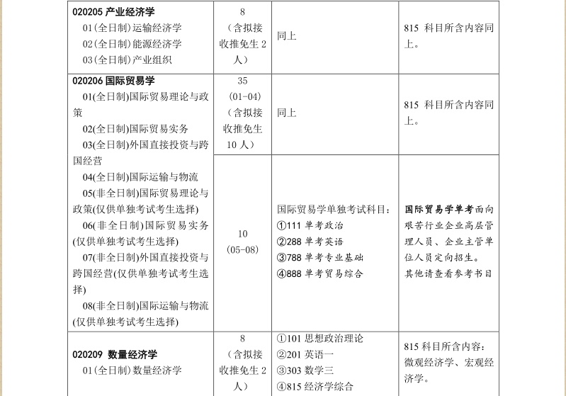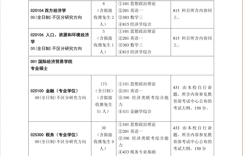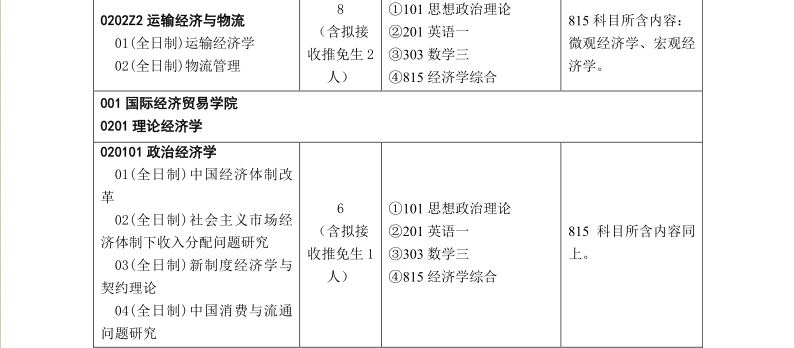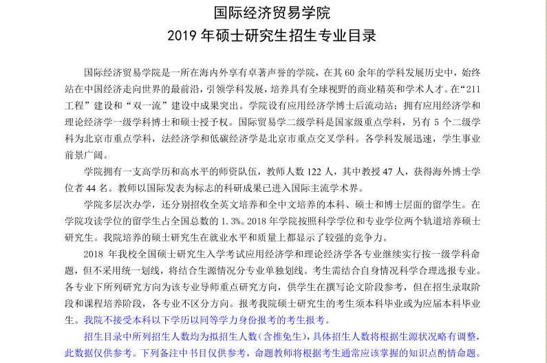 对外经济贸易大学国际经济贸易学院2019年硕士研究生招生专业目录