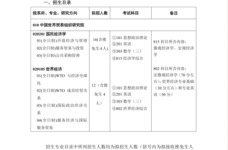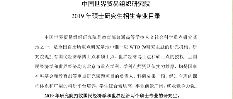 对外经济贸易大学中国世界贸易组织研究院2019年硕士研究生招生专业目录