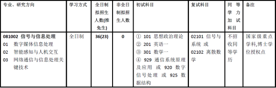 信号与信息处理学科是国家级重点学科,属于我校国家级一级重点学科信息与通信工程下的二级学科。在2012年教育公布的全国学科排名中,我校信息与通信工程学科排名并列第8名。本学科几乎涵盖了信息科学中的信息获取、信息存储、信息传输、信息处理、及信息表现各个方向。目前,本学科重点科研方向包括:数字媒体处理与内容理解、智能感知与人机交互、网络通信与信息处理关键技术。