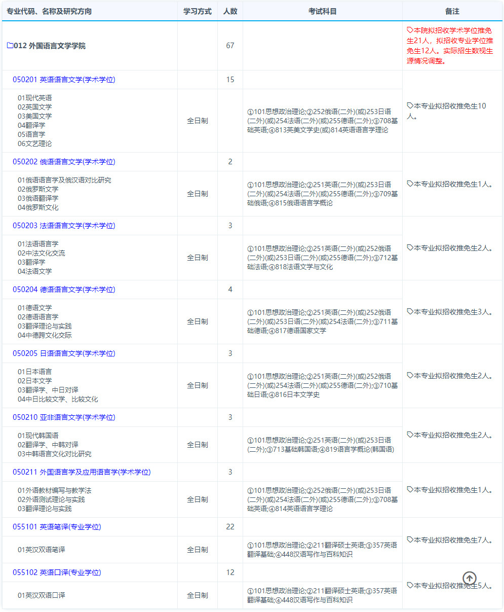 2019年复旦大学外国语言文学学院考研招生专业、招生人数、考试科目