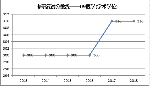 清华大学近六年医学考研复试分数线及趋势图——09医学(学术学位)