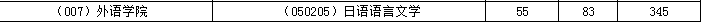 三、对外经济贸易大学日语语言文学专业考研复试分数线情况一览(近三年):