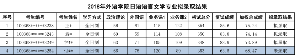 五、对外经济贸易大学日语语言文学专业研究生拟录取情况(2018年名单):