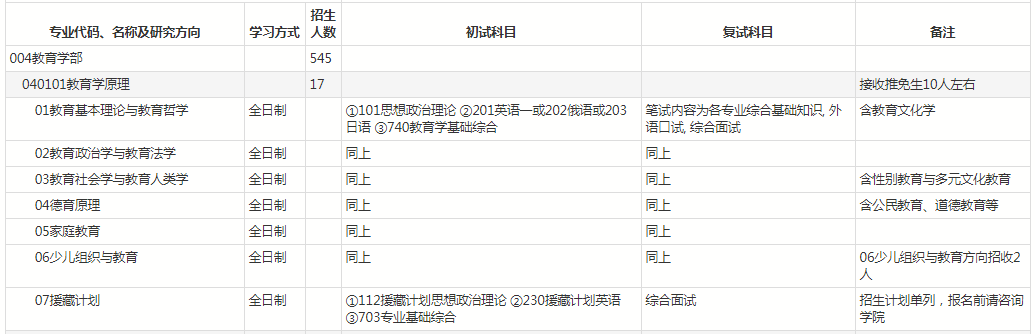 七、教育学原理专业考研院校排名