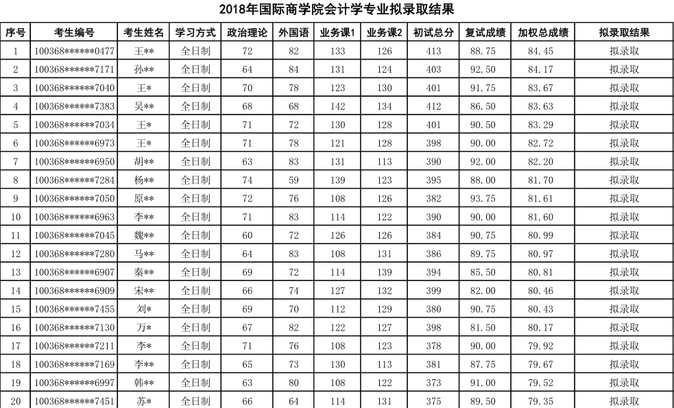 五、对外经济贸易大学会计学专业研究生拟录取情况(2018年名单):