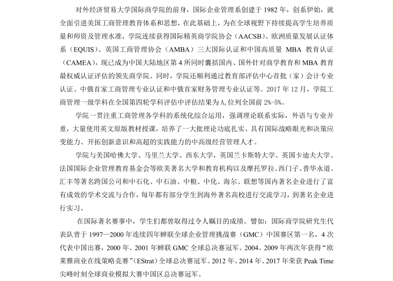 第一部分:关于对外经济贸易大学国际商学院简介及培养特色: