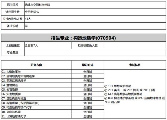 2019年考研北京大学070904构造地质学、招生情况、毕业去向、复试分数线等汇总