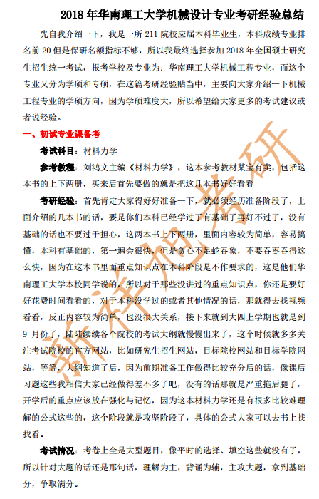 2019华南理工大学机械设计专业考研冲刺备考经验指导!